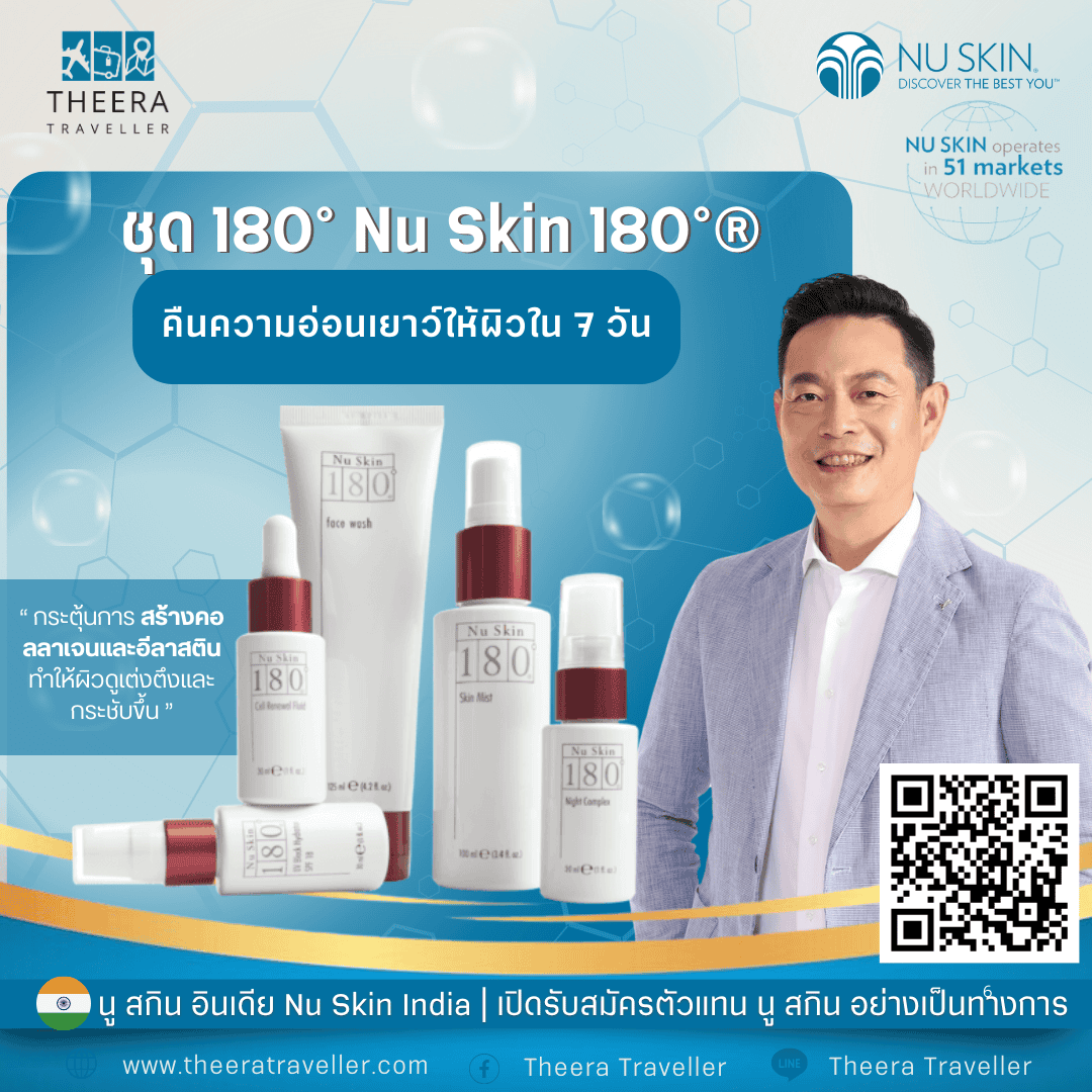 ชุด 180° Nu Skin 180°® เป็นระบบดูแลผิวที่ออกแบบมาเพื่อลดเลือนริ้วรอยและปรับปรุงสภาพผิวโดยรวมภายใน 7 วัน ชุดผลิตภัณฑ์นี้ประกอบด้วยผลิตภัณฑ์ 5 ชิ้นที่ทำงานร่วมกันเพื่อผลลัพธ์ที่ดียิ่งขึ้น